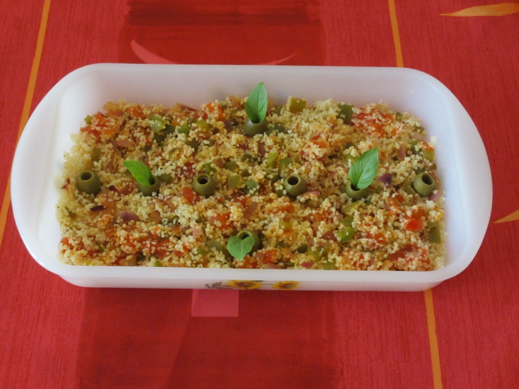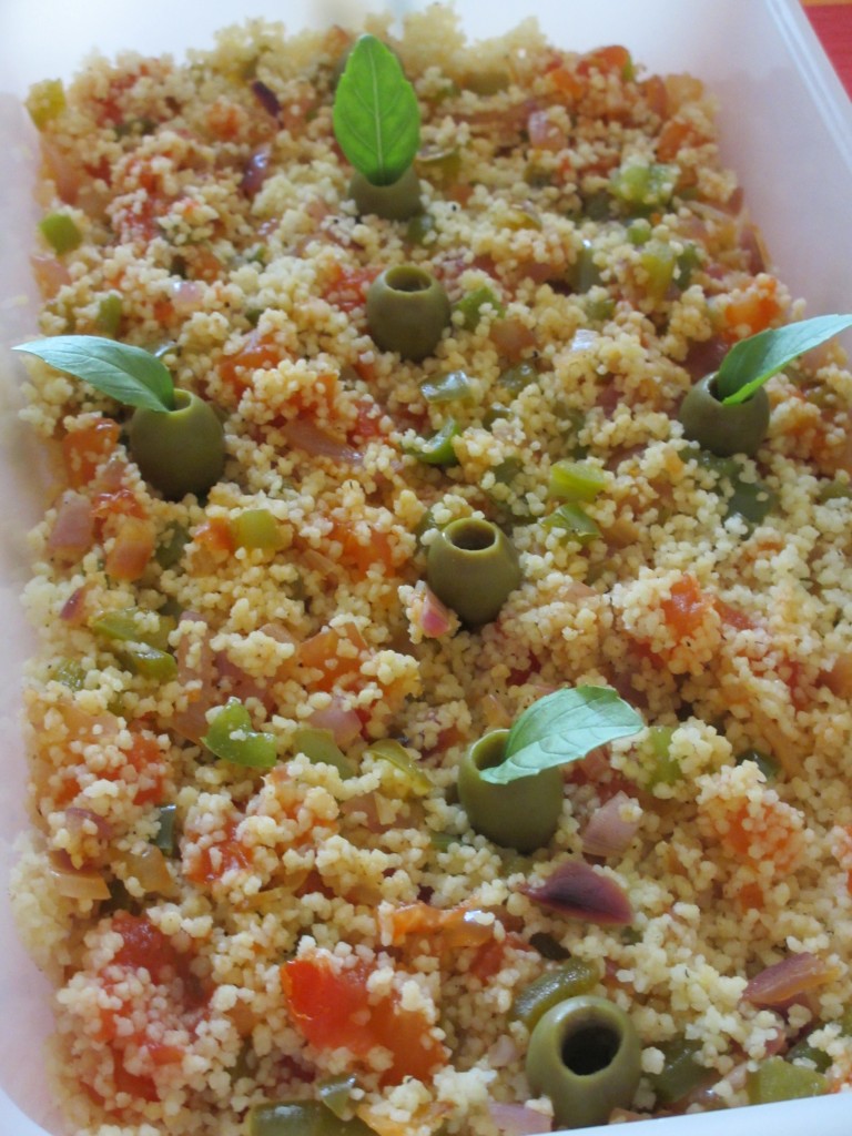 taboulé, oignon rouge,poivron, végétarien, vegan,féculents, olives, basilic,semoule