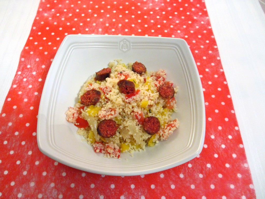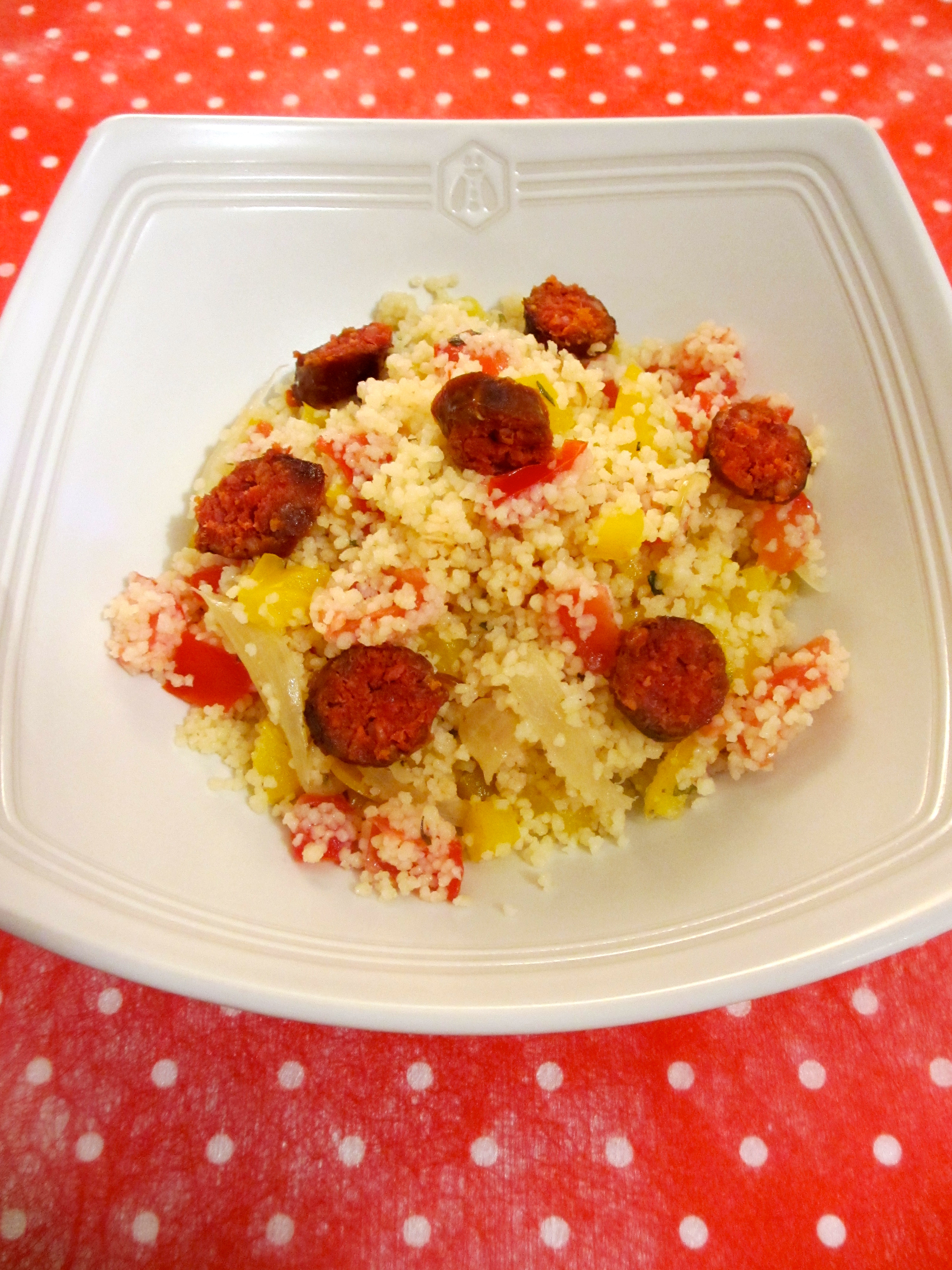 taboulé, taboulé aux poivrons, taboulé aux merguez, merguez, barbecue,poivron, poivron jaune,féculent, semoule, semoule de blé, oignon, tomate