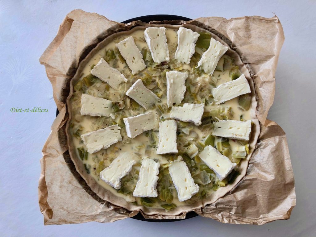 quiche, tarte salée, camembert, poireaux, plat complet, oeufs