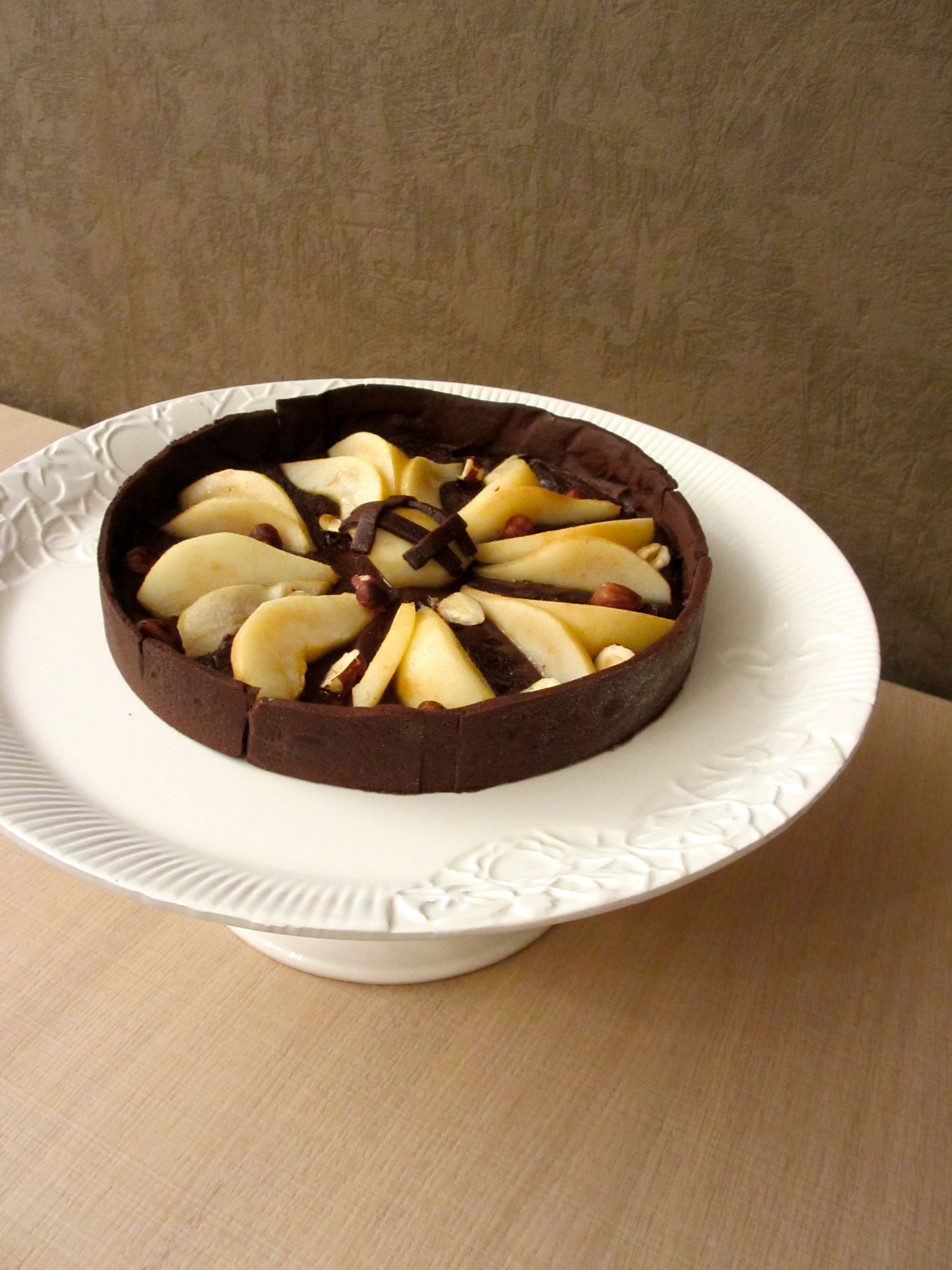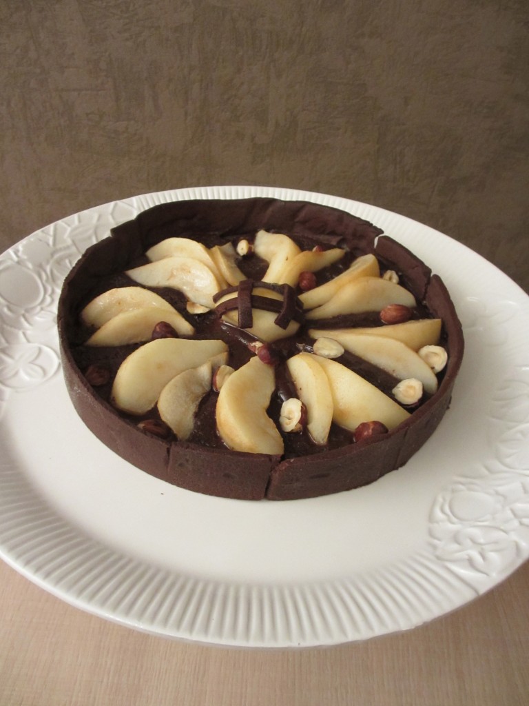- Etaler et foncer la pâte sablée au chocolat dans un moule à tarte.