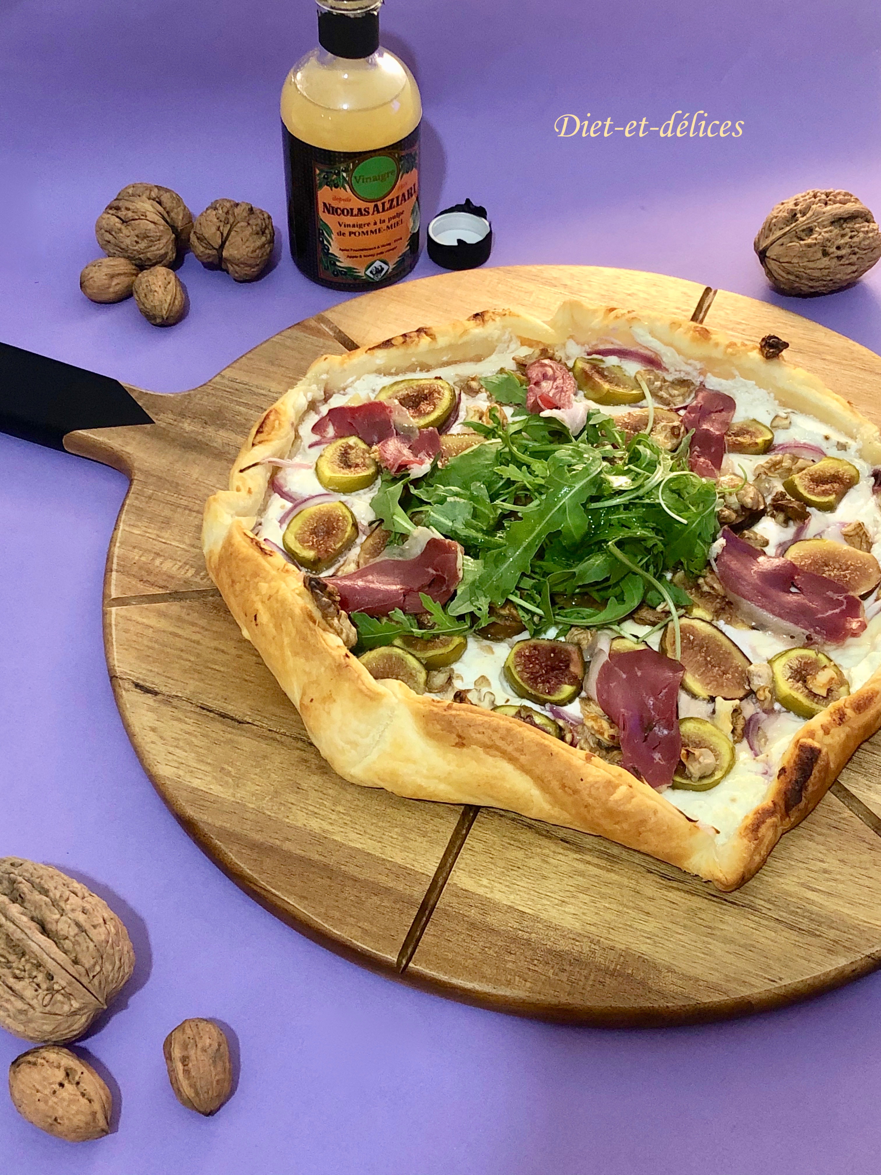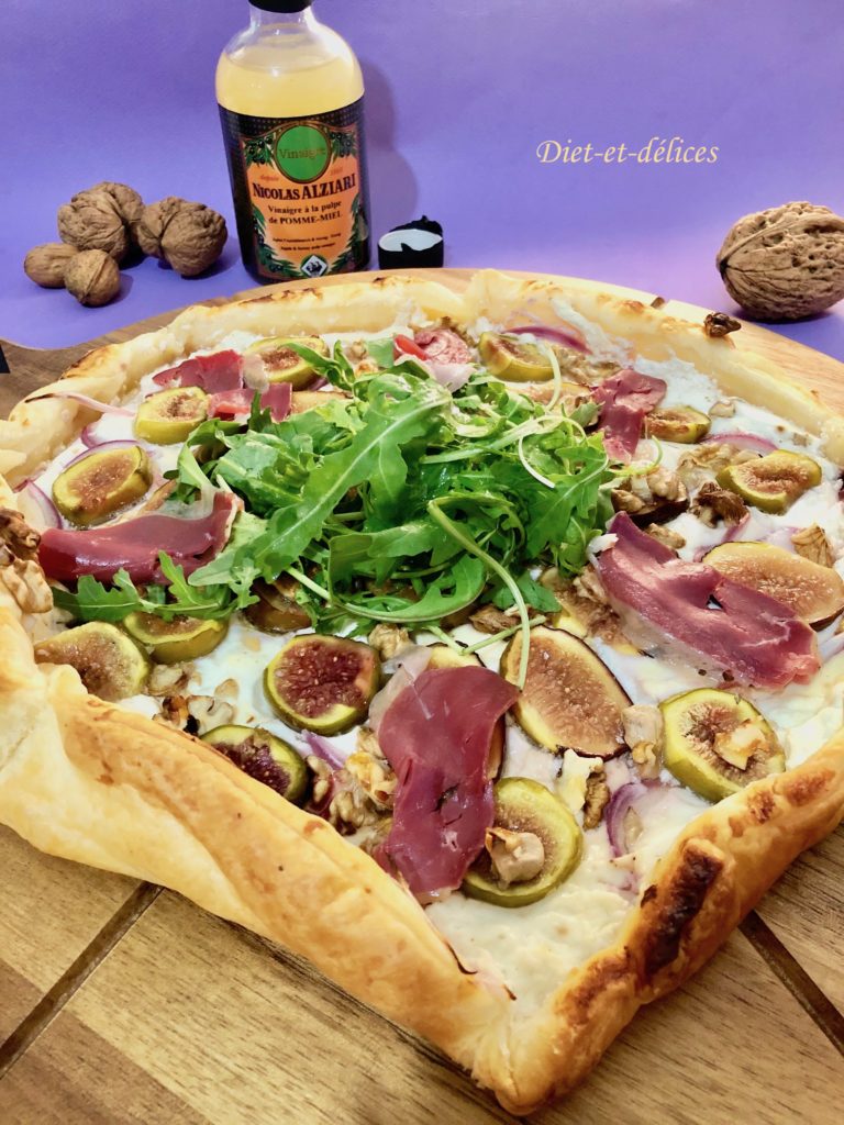 tarte , tarte rustique, figues, magret de canard, roquette, plat complet