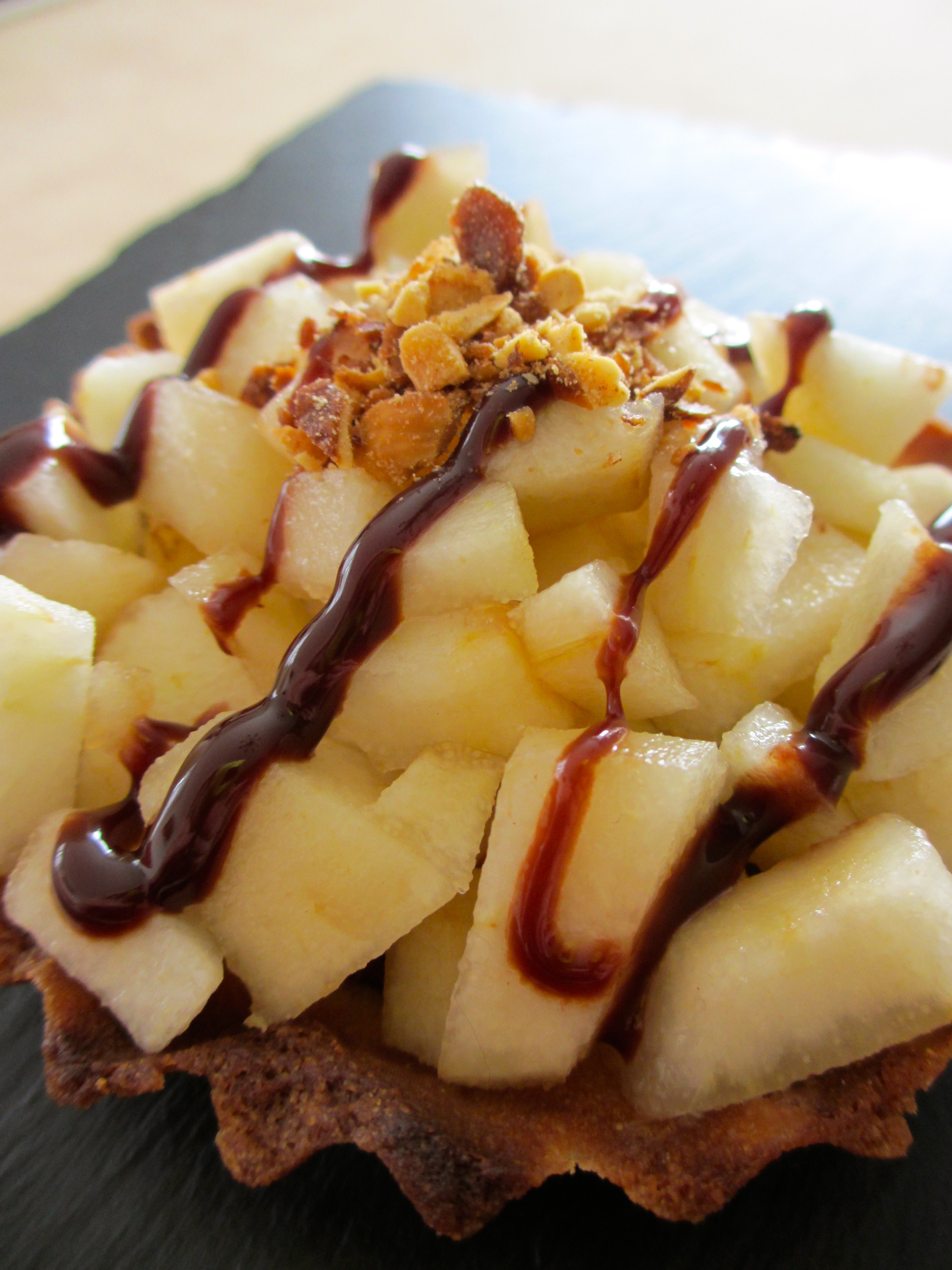 pâte sablée, tartelette, tarte, poire, caramel beurre salé, caramel, praline, chocolat, tartelettes aux poires,poires pralines