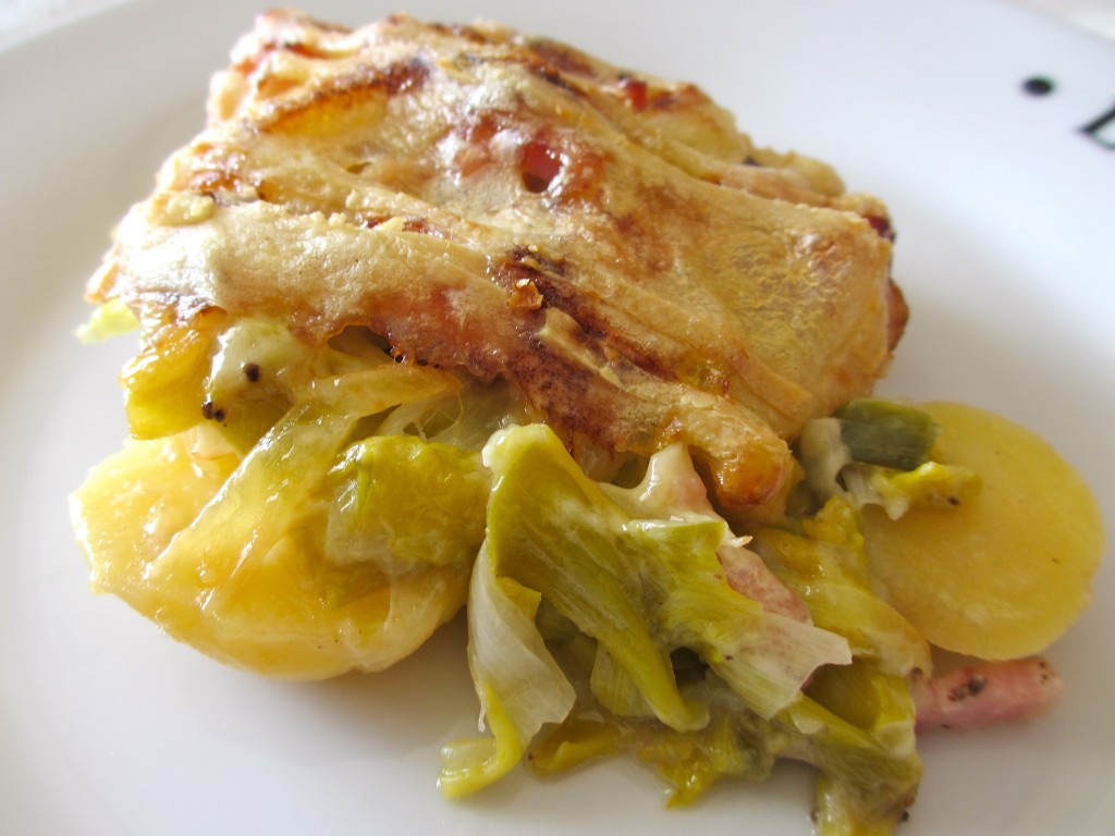 tartiflette, tartiflette allégée, reblochon, poireaux, pommes de terre, lardons , gratin, plat savoyard, plat familial, oignons, plat montagnard