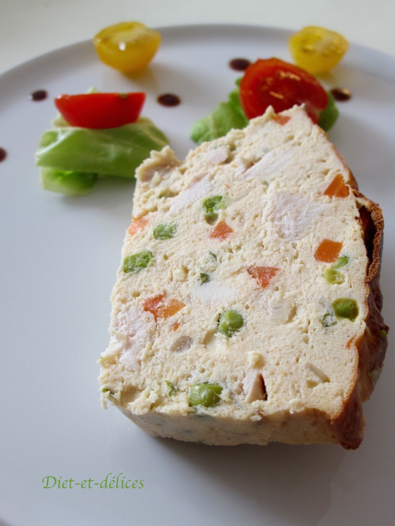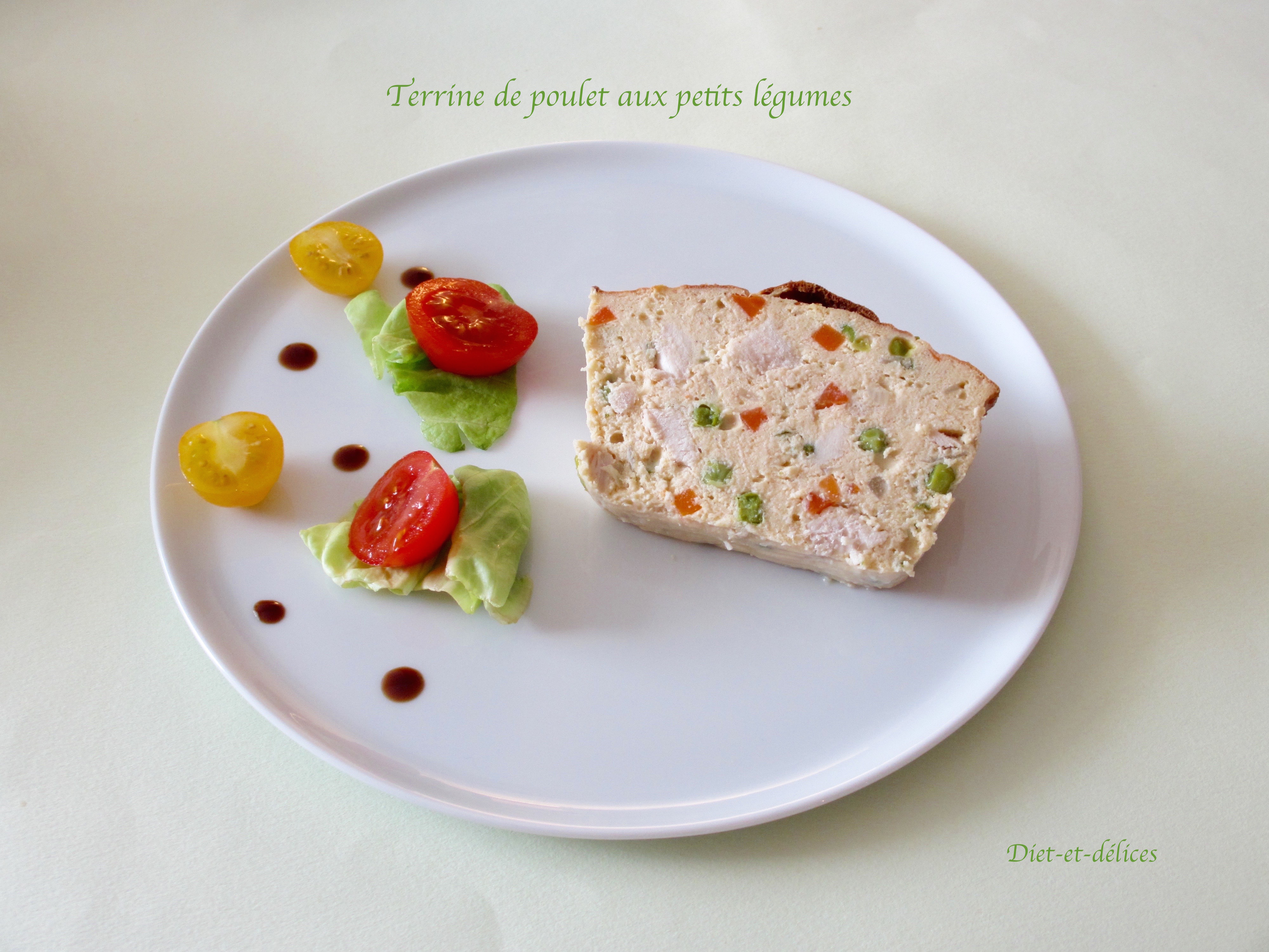 entrée, terrine, poulet, entrée froide, terrine de poulet, filets de poulet , entrée froide au poulet, terrine de poulet aux légumes, petits pois, entrée froide au poulet et légumes, carottes, échalote, purée de piment, diététique, terrine au four
