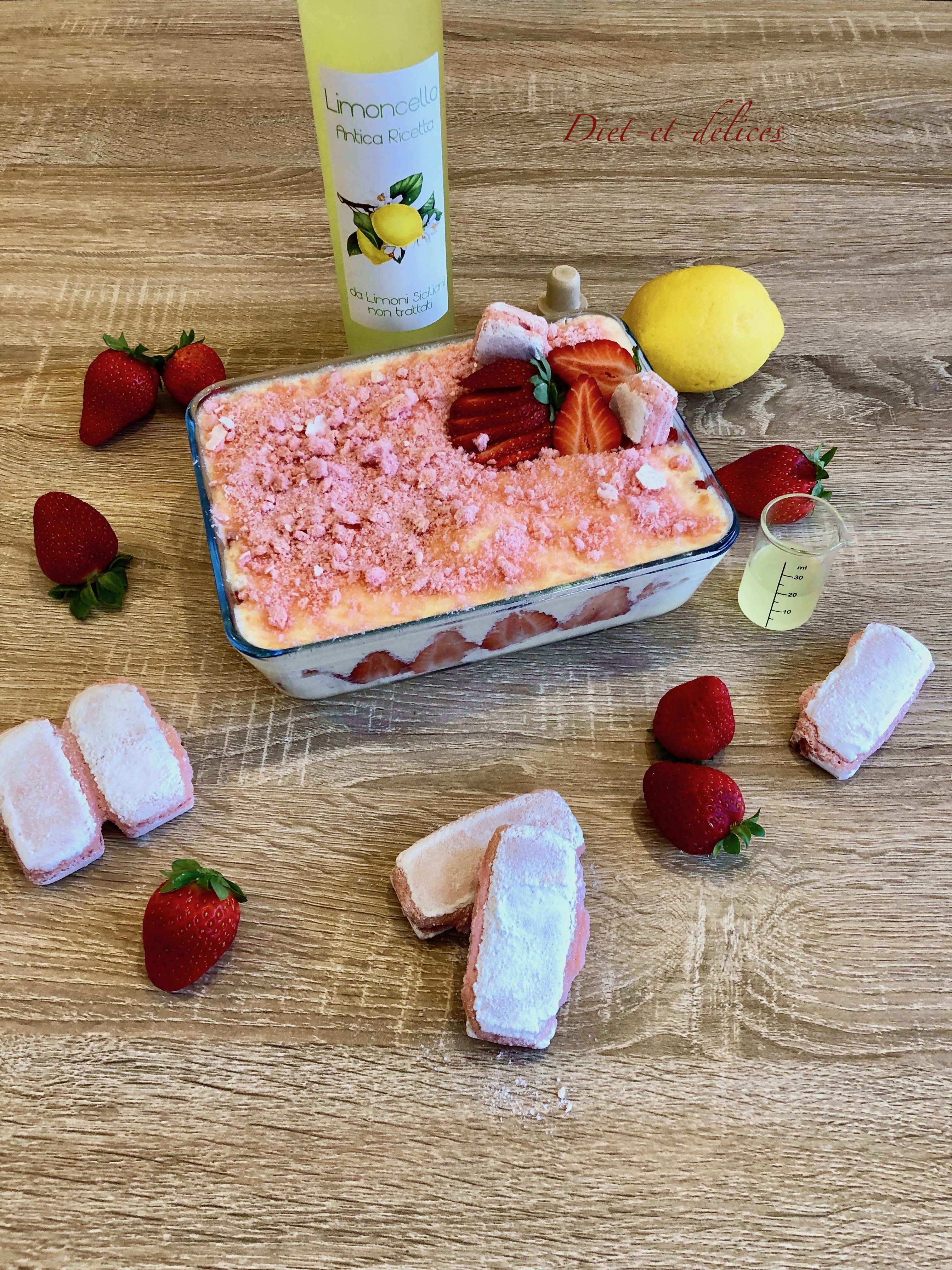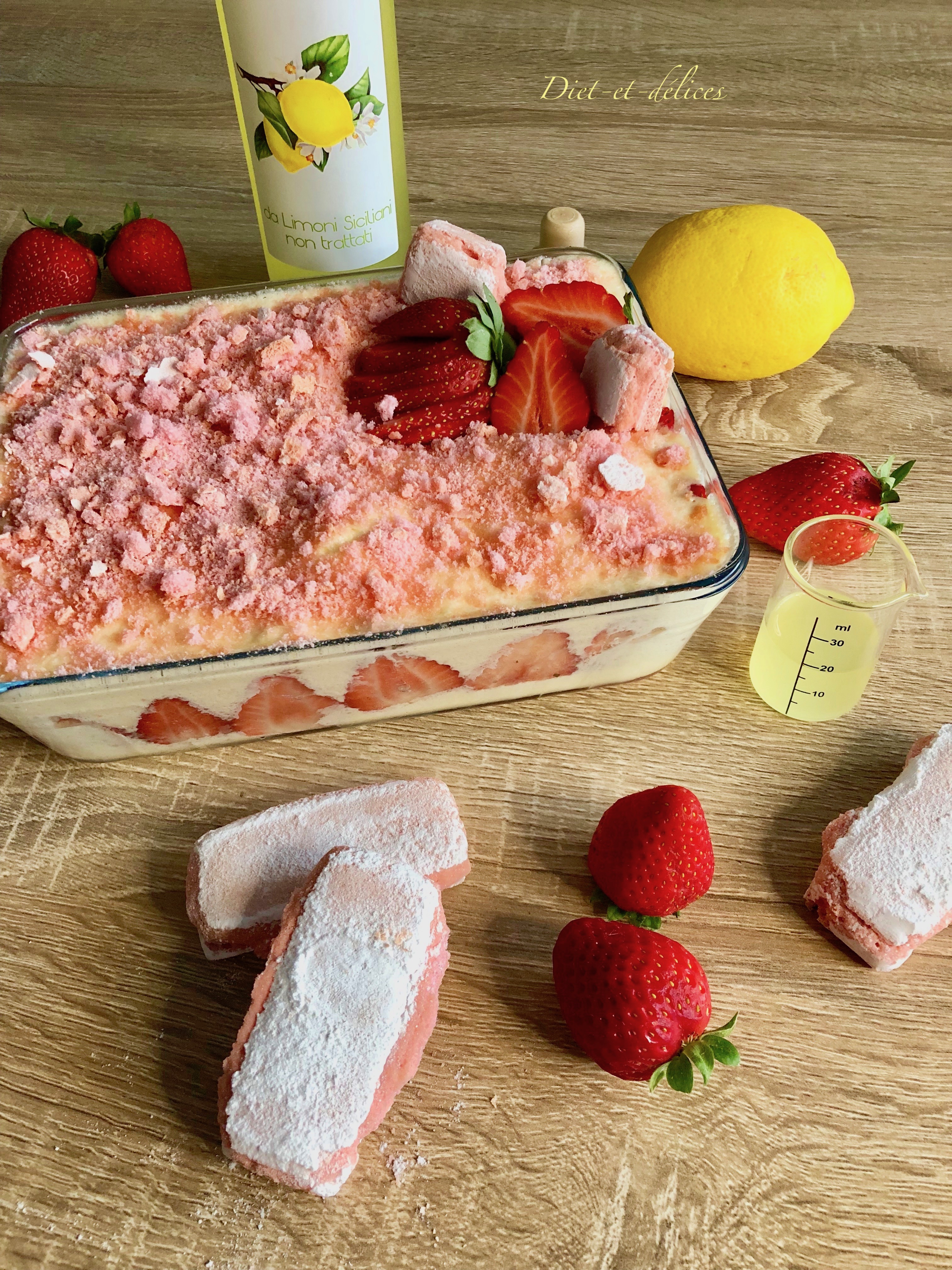 tiramisu, fraises, limoncello, tiramisu aux fraises, biscuits roses, dessert