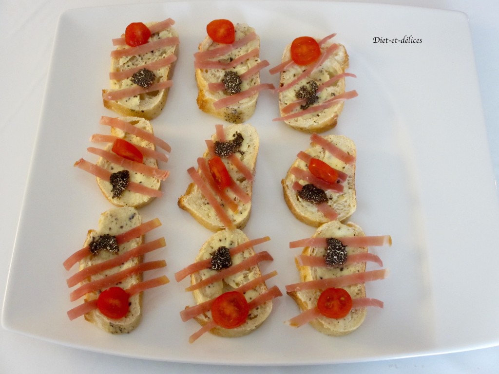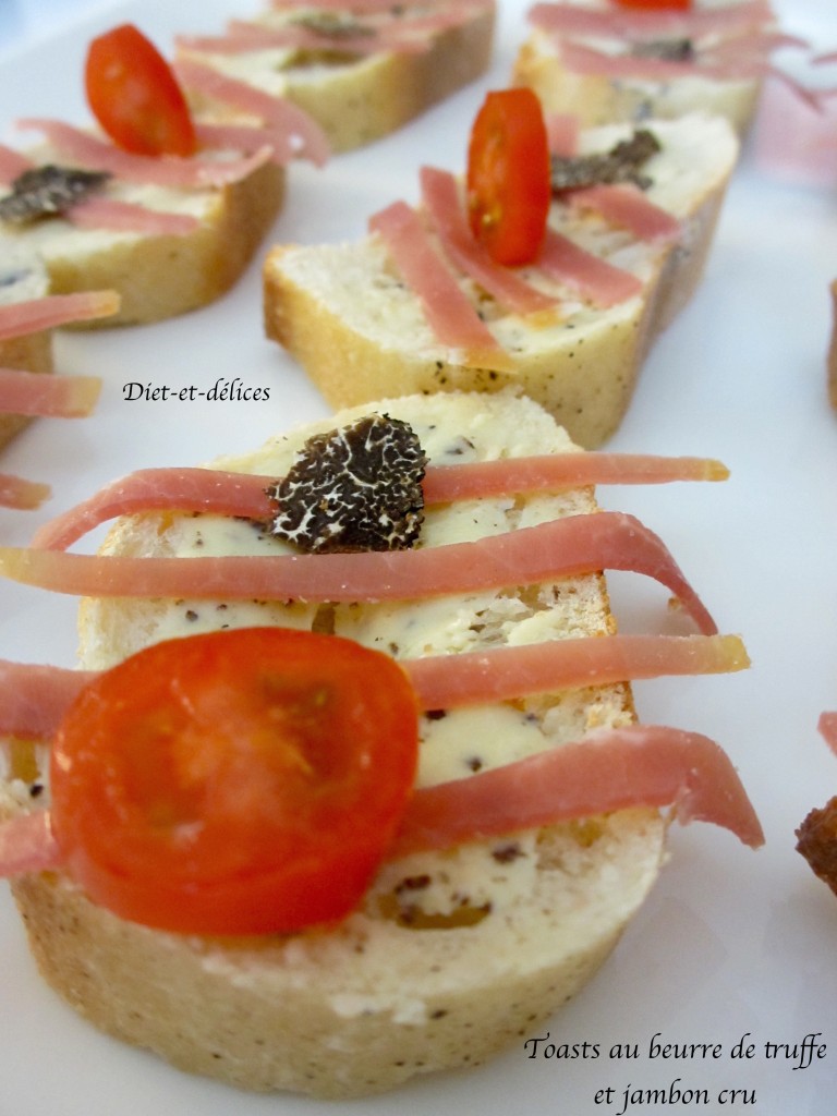 toast, truffe, beurre aux truffes, toast au beurre de truffes, truffe mésentérique, jambon, jambon cru, toast festif, jambon fumé, apéro, apéritif, Noël