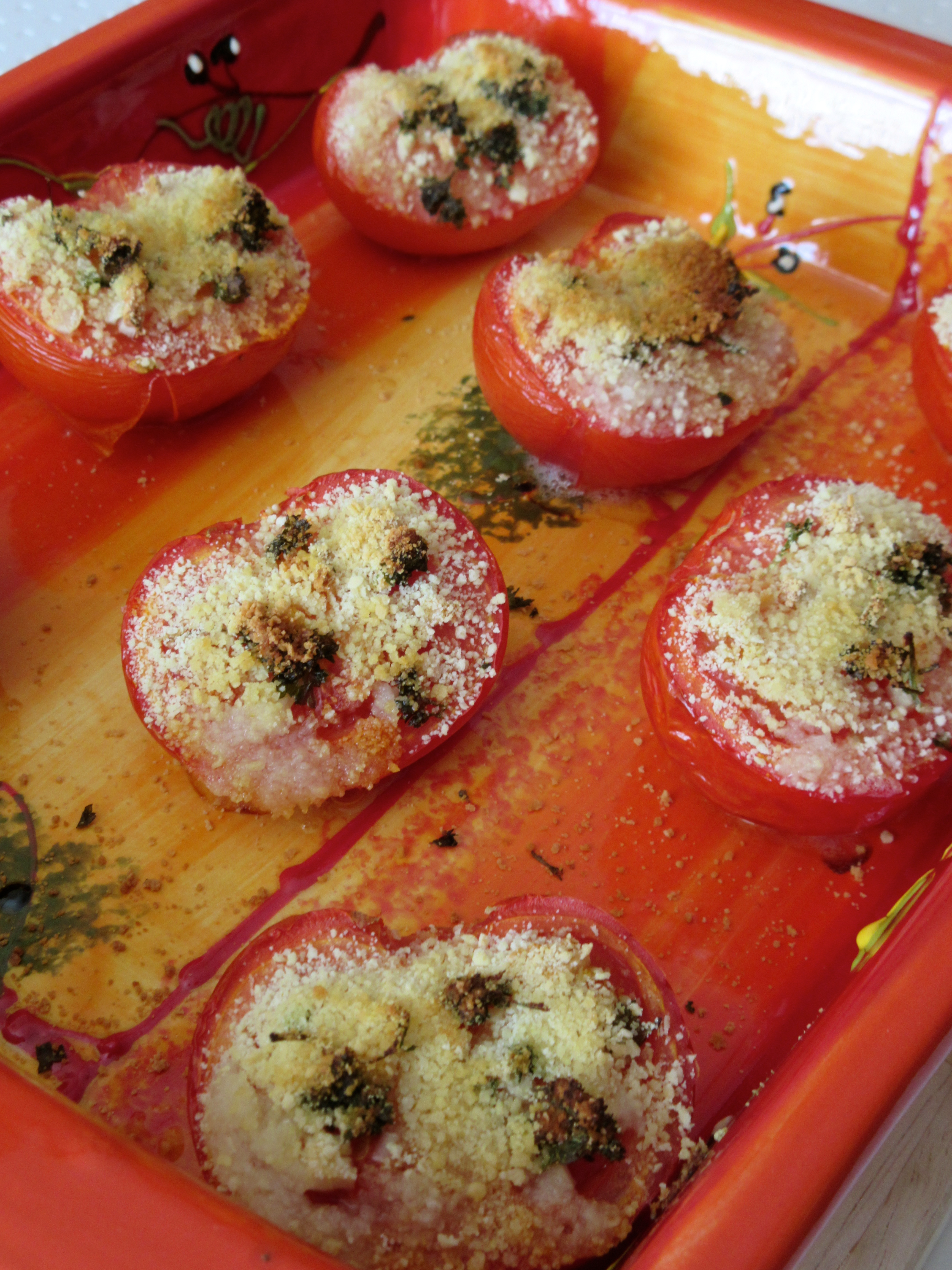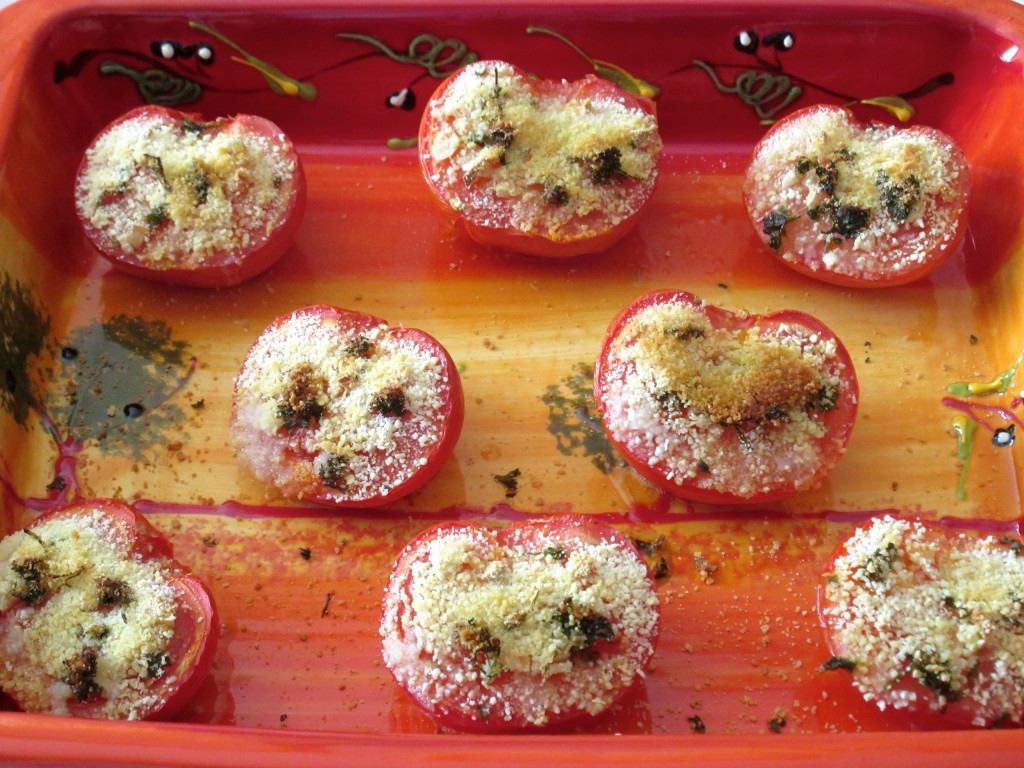 tomates, tomates provençales, tomates à la provençale, persil, ail, cuisine provençale, cuisine méditerranéenne, légumes, cuisine diététique, tomates au four,chapelure, tomates gratinées, vegan, végétarien,diététique