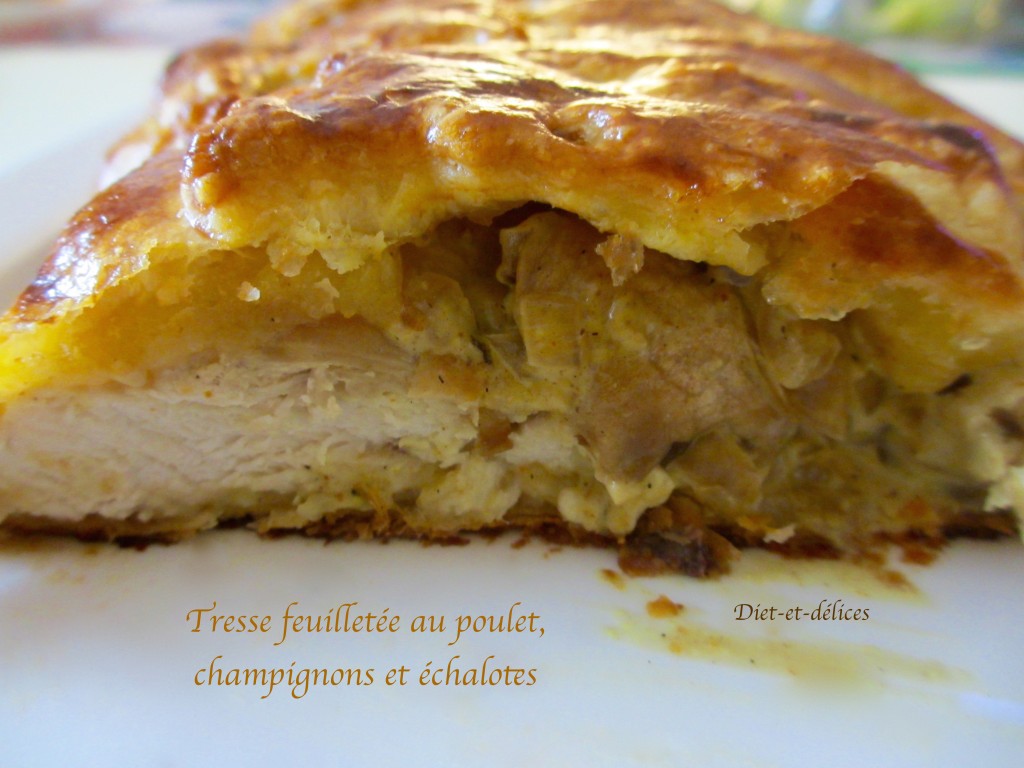 tresse, pâte feuilletée, poulet, tresse feuilletée, champignons, échalotes, tresse feuilletée au poulet, plat complet, ras el hanout