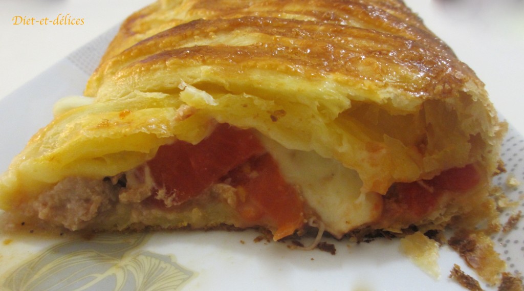 tresse, feuilletage, pâte feuilletée, tresse feuilletée, thon, tomates, tresse feuilletée au thon, bombay carry, tomates pelées, olives, mozzarella, olives vertes, plat complet, poisson
