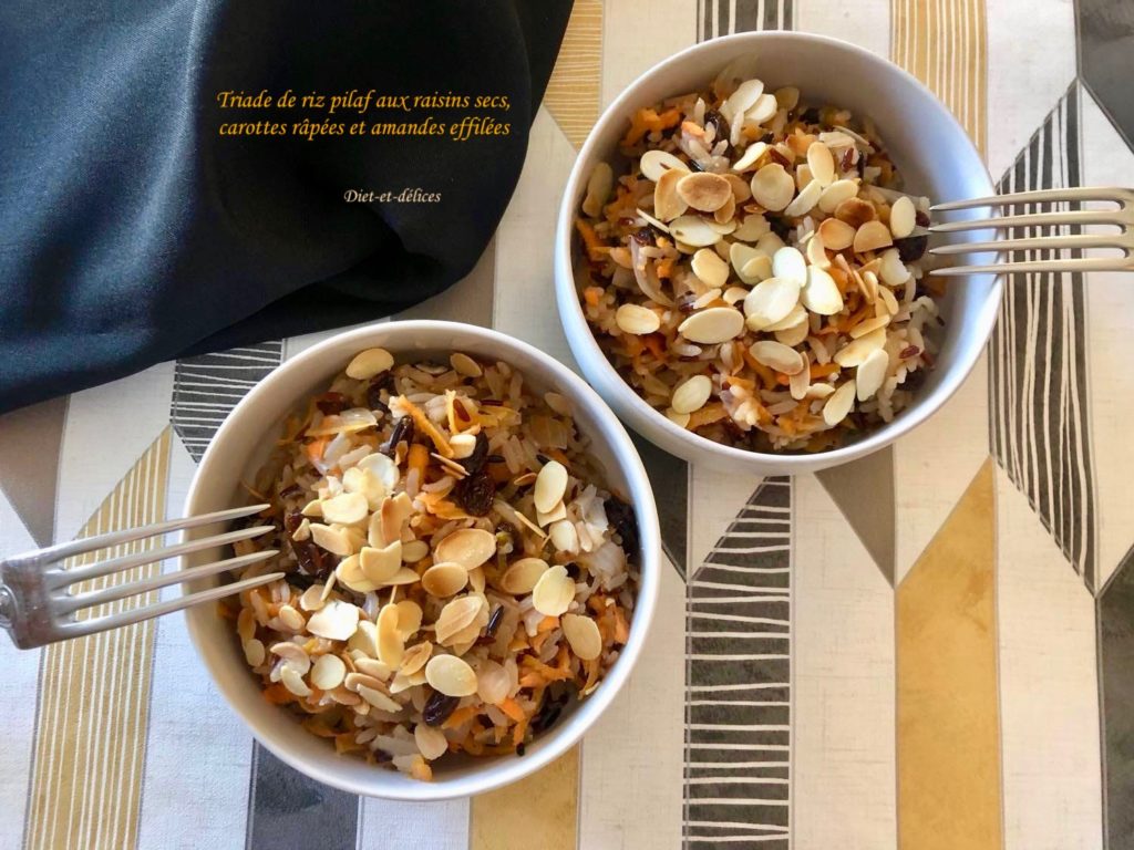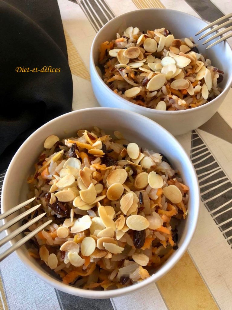 riz, riz tricolore, raisins secs, amandes effilées, sucré salé, carotte