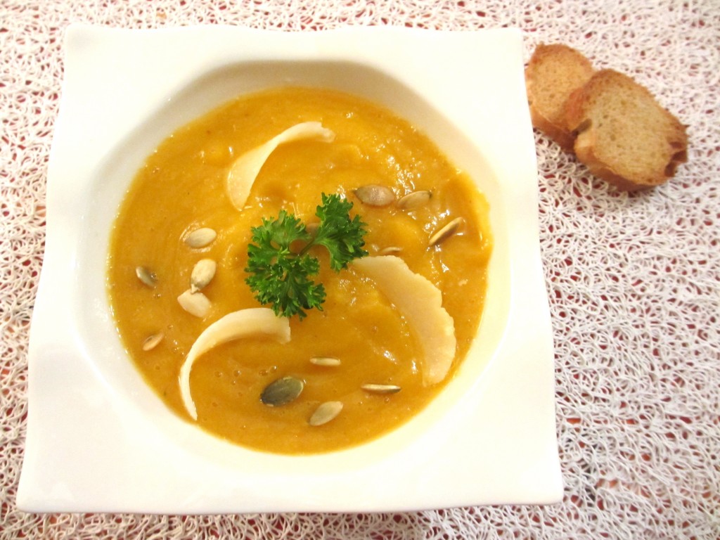 velouté, velouté de chou fleur, chou fleur, velouté carottes,velouté de chou fleur et carottes, carottes chou fleur, graines de courge,parmesan, potage