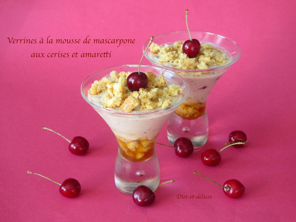 verrines, cerises, dessert , verrines aux cerises, mousse aux cerises, dessert aux cerises, mascarpone, amaretti