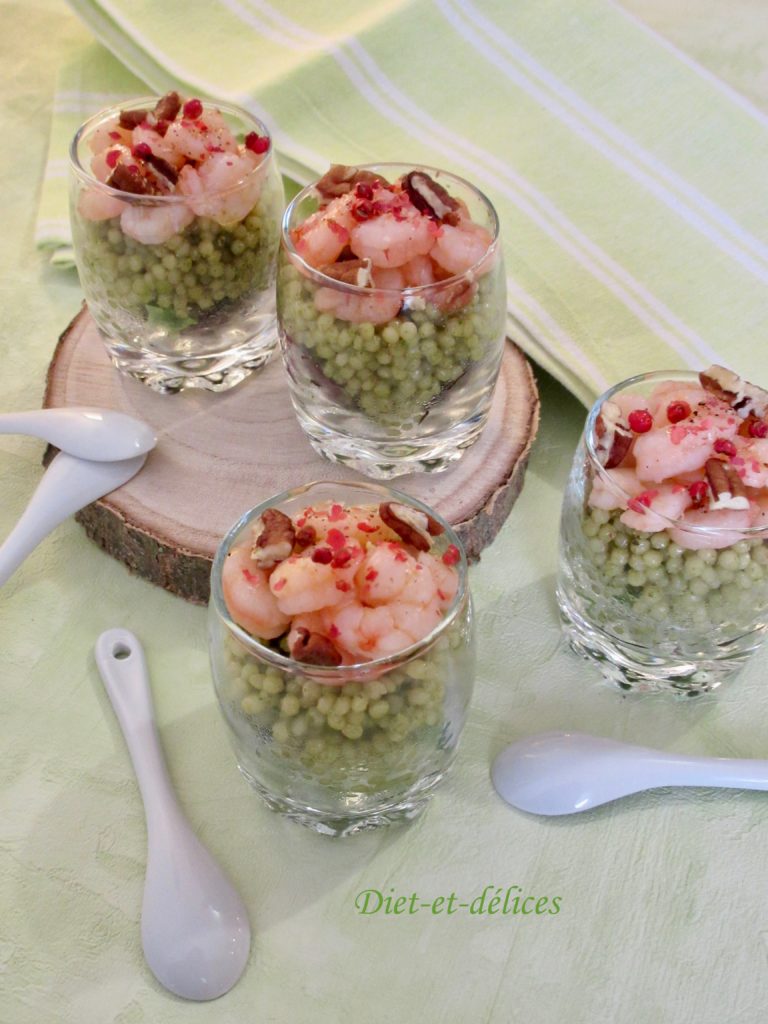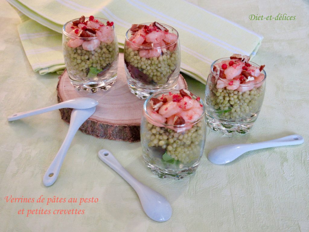 apéro, apéritif, verrines, pesto, pâtes, crevettes