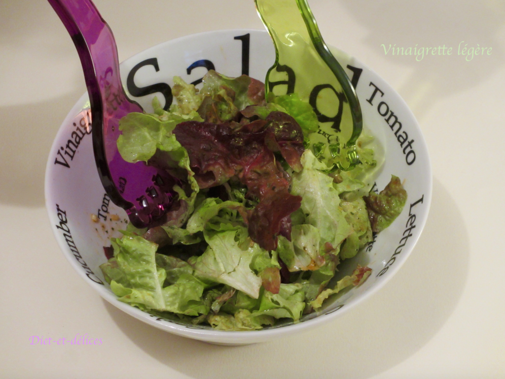 salade, vinaigrette, diététique, salade diététique, vinaigrette légère, eau pétillante, feuille de chêne, vinaigrette allégée, vinaigre de tomates, verdurette, assaisonnement pour salade, cuisine saine