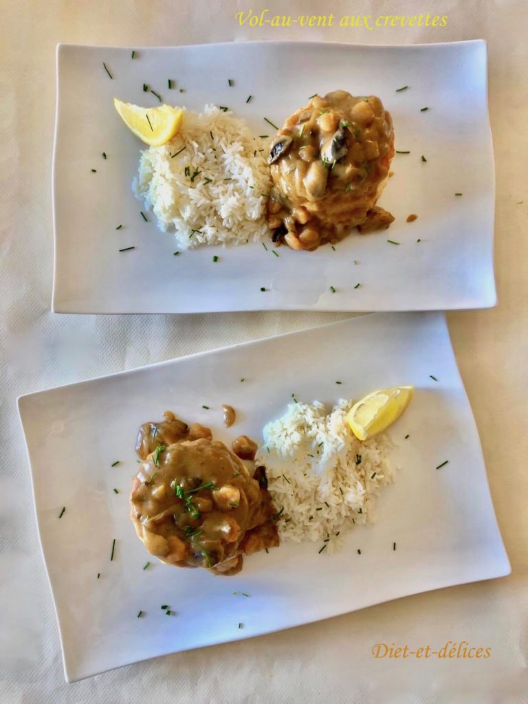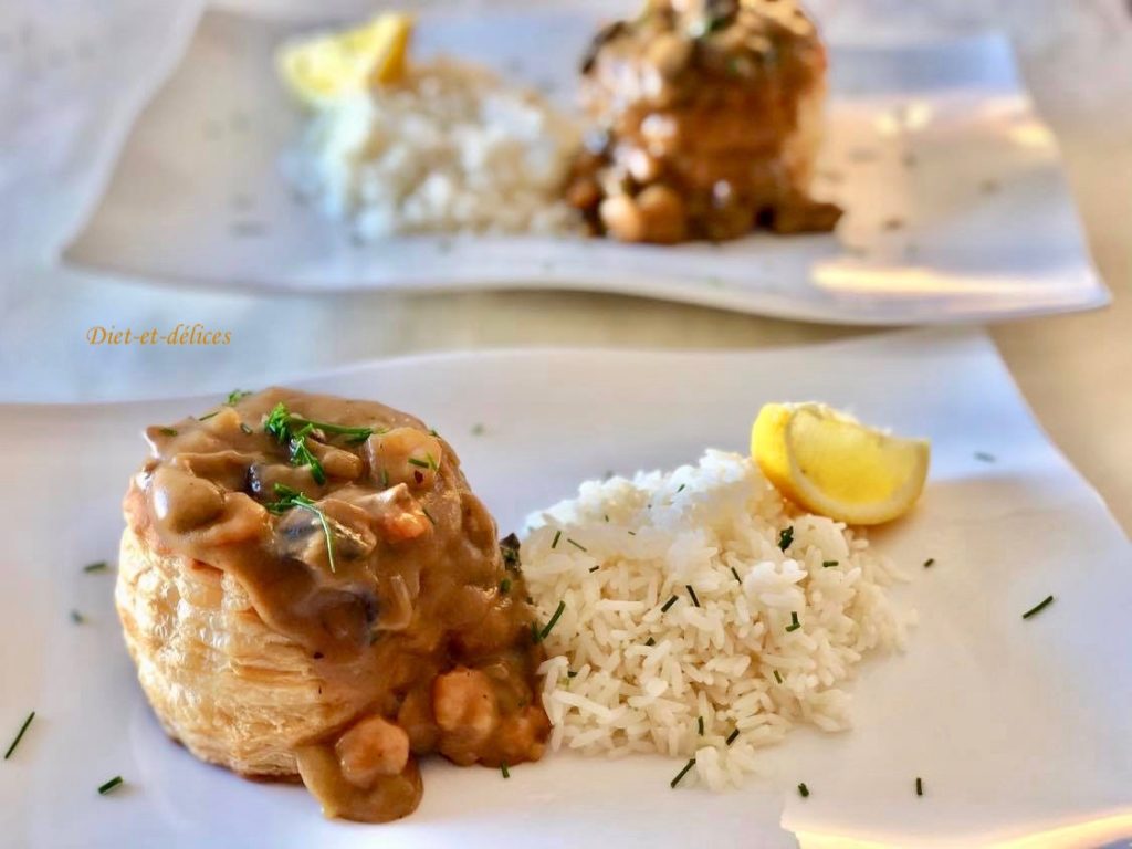 bouchées, vol au vent, crevettes, fond de bouillabaisse, sauce, champignons, plat complet