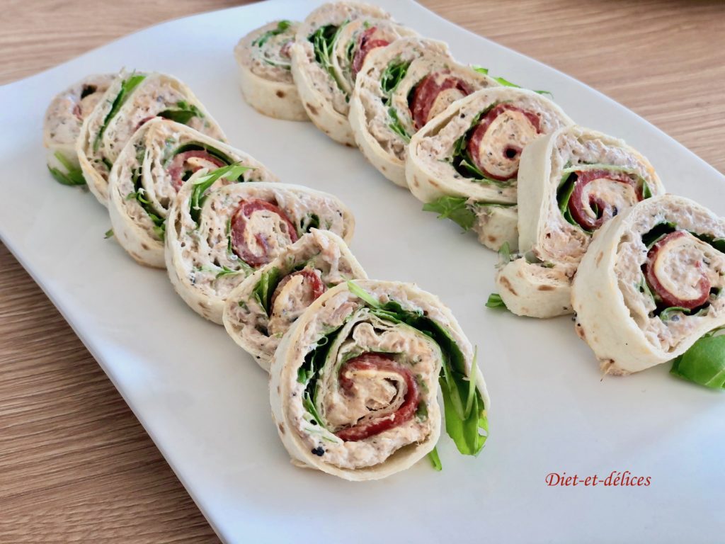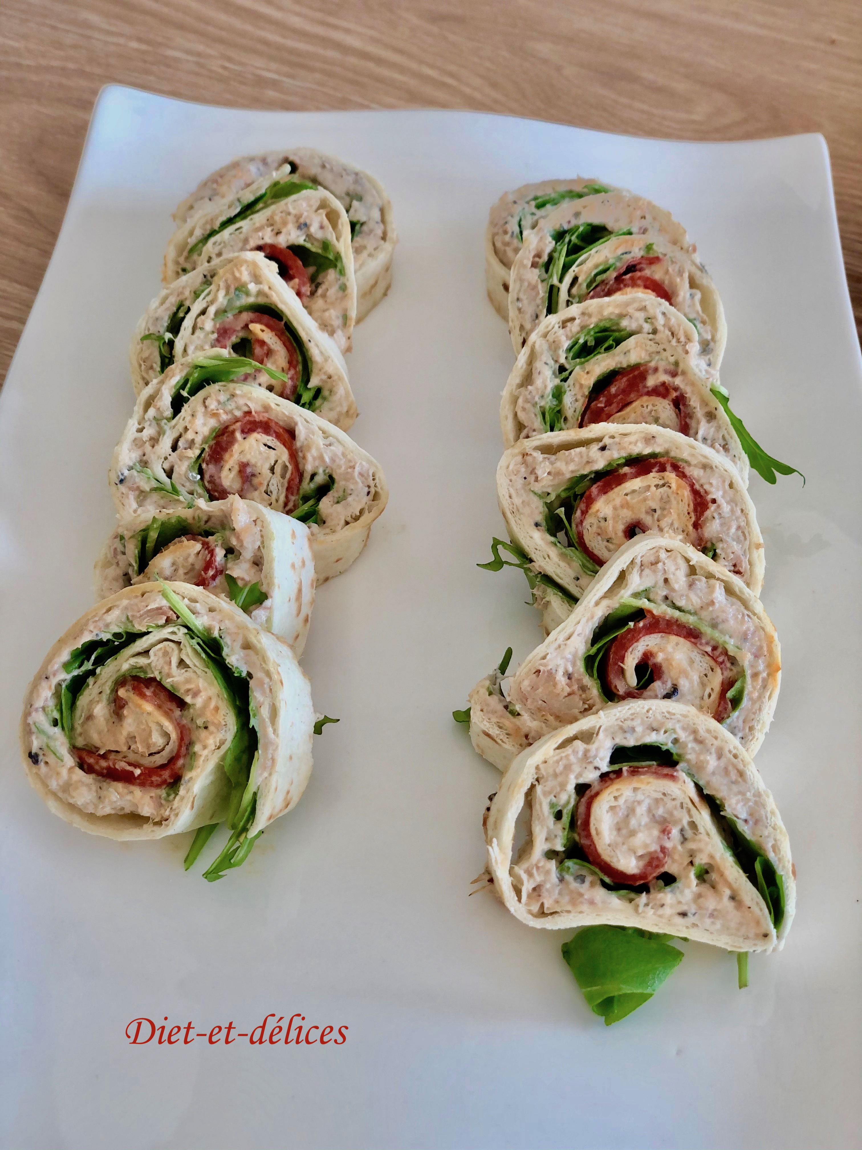 apéritif, apéro, wrap, sardines, fromage frais, roquette, piquillos, bouchées apéritives